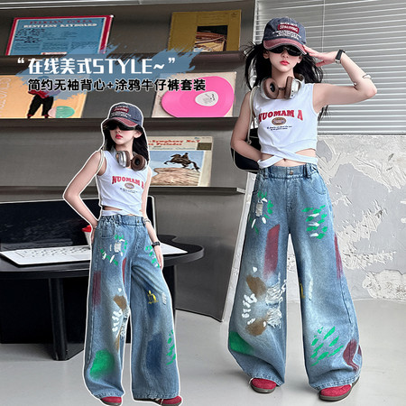 唯*店下载视频“2579手绘牛仔仔裤配2422背心”